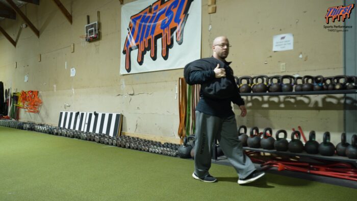 The sandbag shoulder carry is one of the most effective loaded carry variations for building lateral trunk stability, oblique strength, hip mobility, and conditioning for powerlifters, combat sport athletes, and general fitness clients. Learn how to perform the sandbag shoulder carry with proper form, why it works as an anti-lateral flexion core exercise, and how to program it for both strength and conditioning blocks at THIRST Gym.