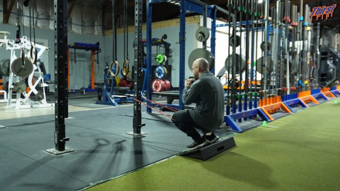Heels Elevated SSB Squat vs Bands