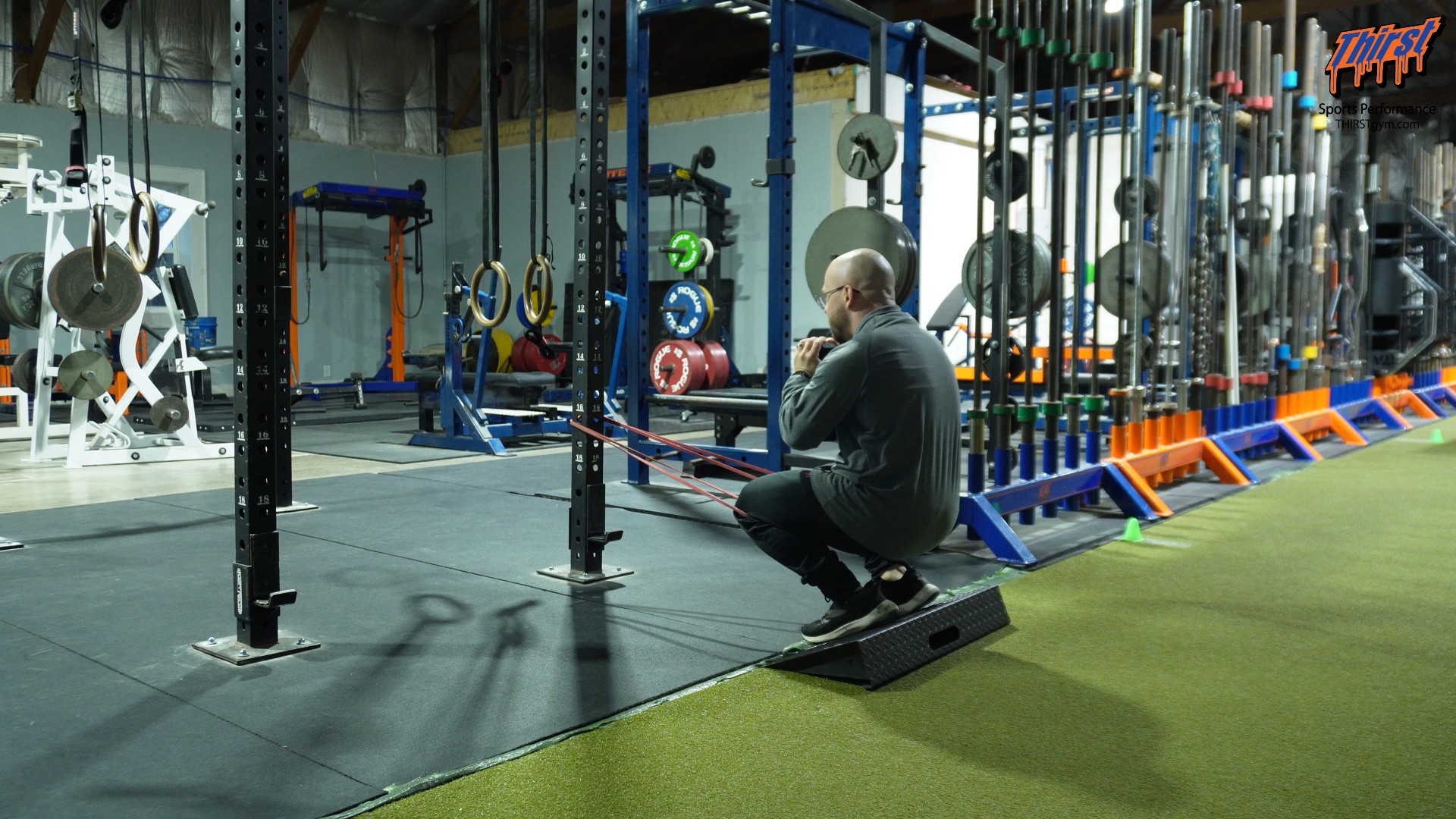 Executing the heels elevated Spanish squat requires several specific pieces of equipment, though creative substitutions allow most training facilities to accommodate this movement. Your primary anchoring point should be a power rack upright, sturdy pole, or similar immovable structure capable of supporting significant band tension without shifting position. The resistance band itself should provide moderate to heavy resistance—light bands won’t create sufficient loading to challenge the quadriceps effectively, while excessively heavy bands can compromise form and positioning.