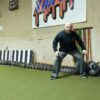 The defining feature of this exercise is the Pentagon attachment (or similar dual-handle attachment such as a Viking overhead press handle). This specialized attachment connects to the end of the barbell and provides two parallel handles that allow you to grip the weight while creating space for your legs to move through the split squat pattern. The Pentagon attachment also enables you to load weight plates on both sides, significantly increasing the exercise’s loading potential compared to single-ended landmine movements.